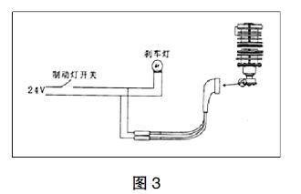 如圖3所示,踩下剎車踏板,制動(dòng)燈開關(guān)關(guān)閉,剎車燈亮,同時(shí)電控不銹鋼冷凝器底部電磁閥通電,控制電控不銹鋼冷凝器排污。